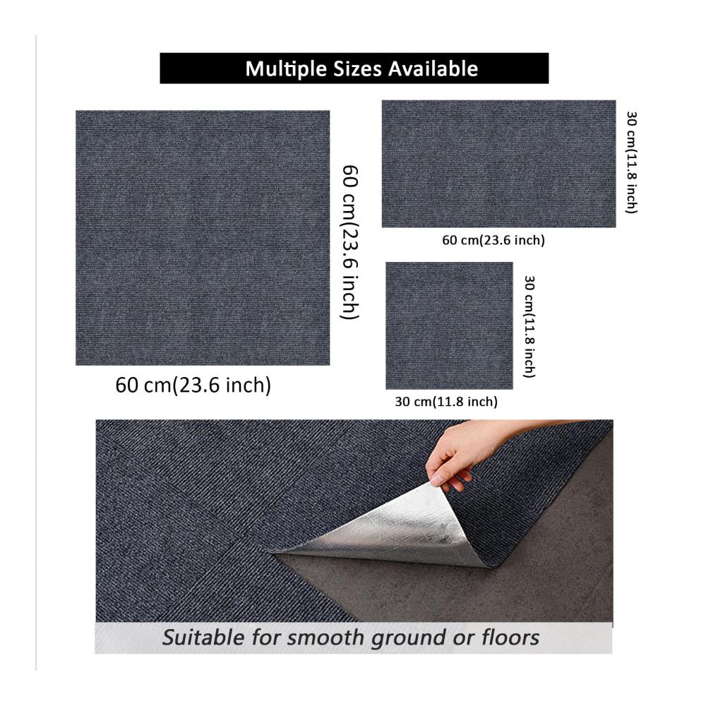 Die Packung enthält 12 rutschfeste selbstklebende Teppichfliesen, die sich perfekt für den Einsatz im privaten und gewerblichen Bereich eignen. Jede Fliese ist quadratisch und bietet eine einfache DIY-Installation, ohne dass Sie zusätzliches Werkzeug benötigen.