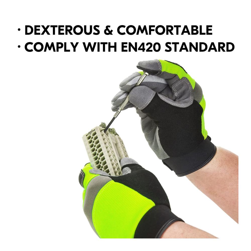 Diese hochwertigen Arbeitshandschuhe sind die perfekte Wahl für eine Vielzahl von Anwendungen, von Lagerarbeiten über Handwerk bis hin zur Mechanikarbeit. Das innovative Design kombiniert Spandex und Synthetikleder, um Ihnen nicht nur hervorragenden Schutz, sondern auch optimalen Komfort zu bieten.