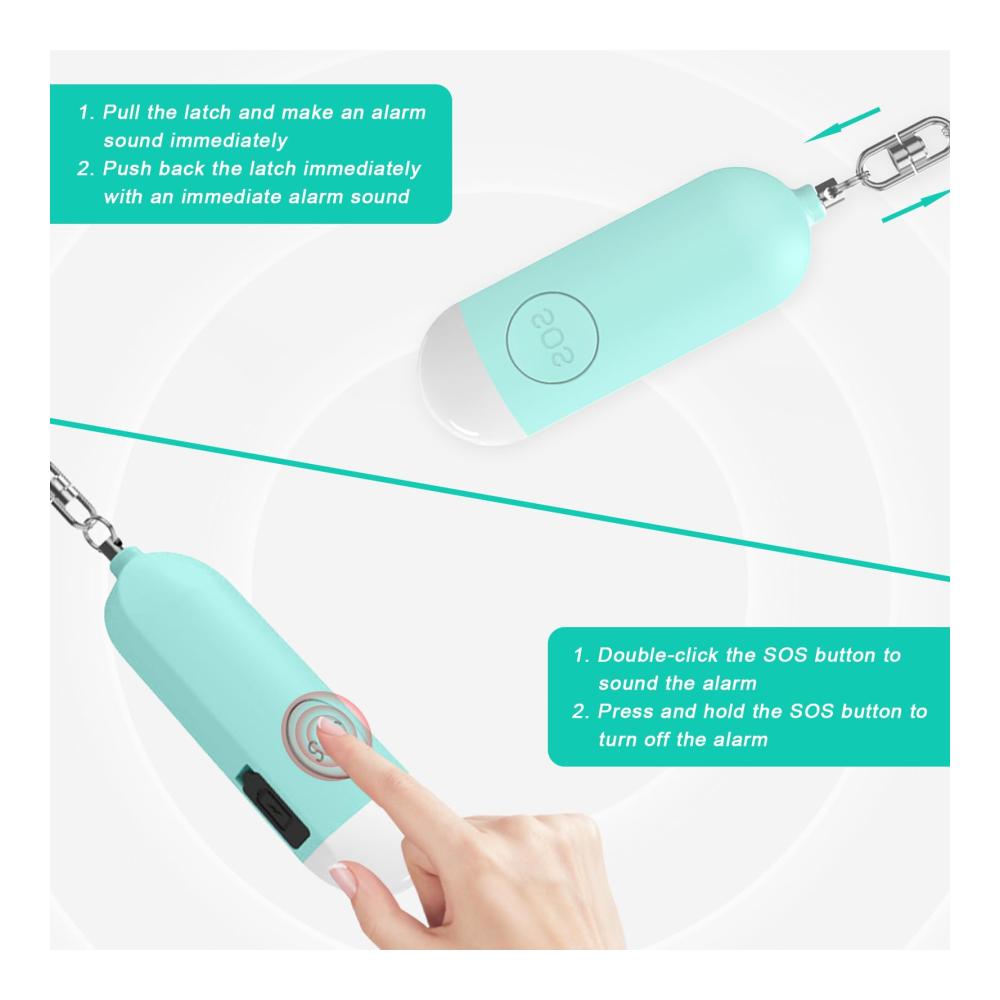 【VERRIEGELUNG/SOS-ALARM】Unser Persönlicher Alarm Schlüsselanhänger verfügt über zwei Alarmmodi. Einer besteht darin, den Riegel zu ziehen und sofort den Alarm auszulösen, und den Riegel zurückzuschieben, um den Alarm sofort auszuschalten; der andere besteht darin, auf die SOS-Taste zu doppelklicken, um den Alarm auszulösen Alarm aus und drücken Sie lange auf die SOS-Taste, um den Alarm auszuschalten.