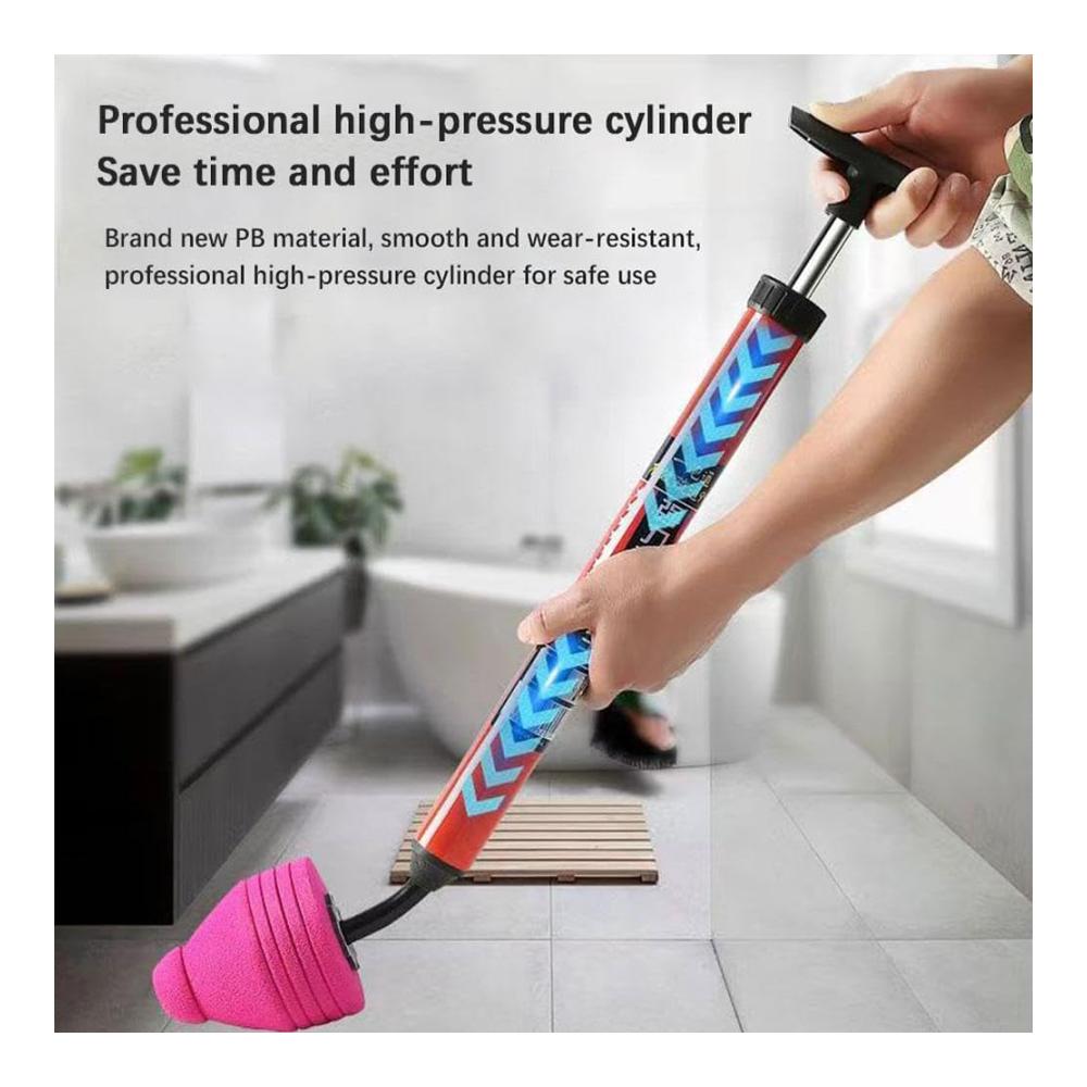 Pneumatic Piston: The pneumatic piston of this high-pressure toilet plunger features a sliding ABS plastic handle that eliminates concerns about deformation and rust. Additionally, its ergonomic design provides a large force-receiving area for comfortable gripping while allowing for increased air pressure compression. The flexible handles and convenient drive button ensure easy operation.