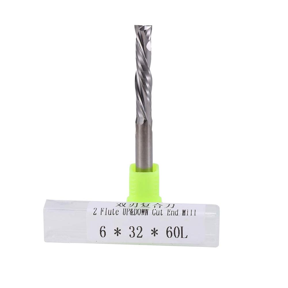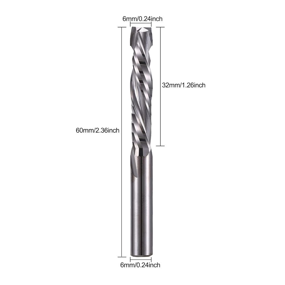 【Allgemeine Informationen】Up Down Cut, 6mm Schaft x 6mm Schneiddurchmesser, 32 mm (1.26 Zoll) Nutlänge mit 2 Spiralnuten, Gesamtlänge 60mm (2.36 Zoll), 2 Stück pro Packung