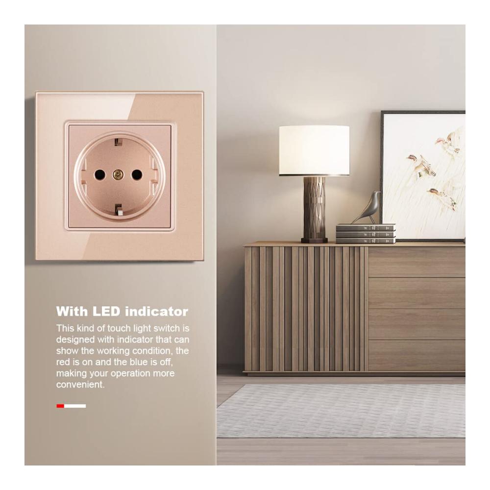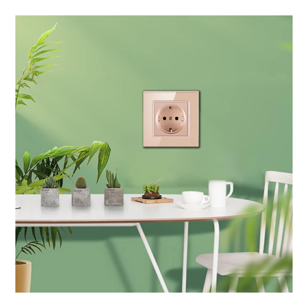 EU-Stecker Steckdose AC110-240V 16A 86 Typ wandmontierte geerdete Steckdose Kunststoffsteckdosen Zubehör 86x86x35mm Schwarz Gold