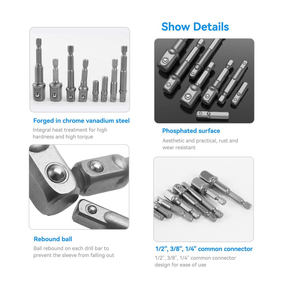 Breite Anwendung: geeignet für elektrische Bohrmaschinen, pneumatische Bohrmaschinen, elektrische Schraubenschlüssel, manuelle Schraubenschlüssel, pneumatische Schraubendreher, elektrische Schraubendreher us