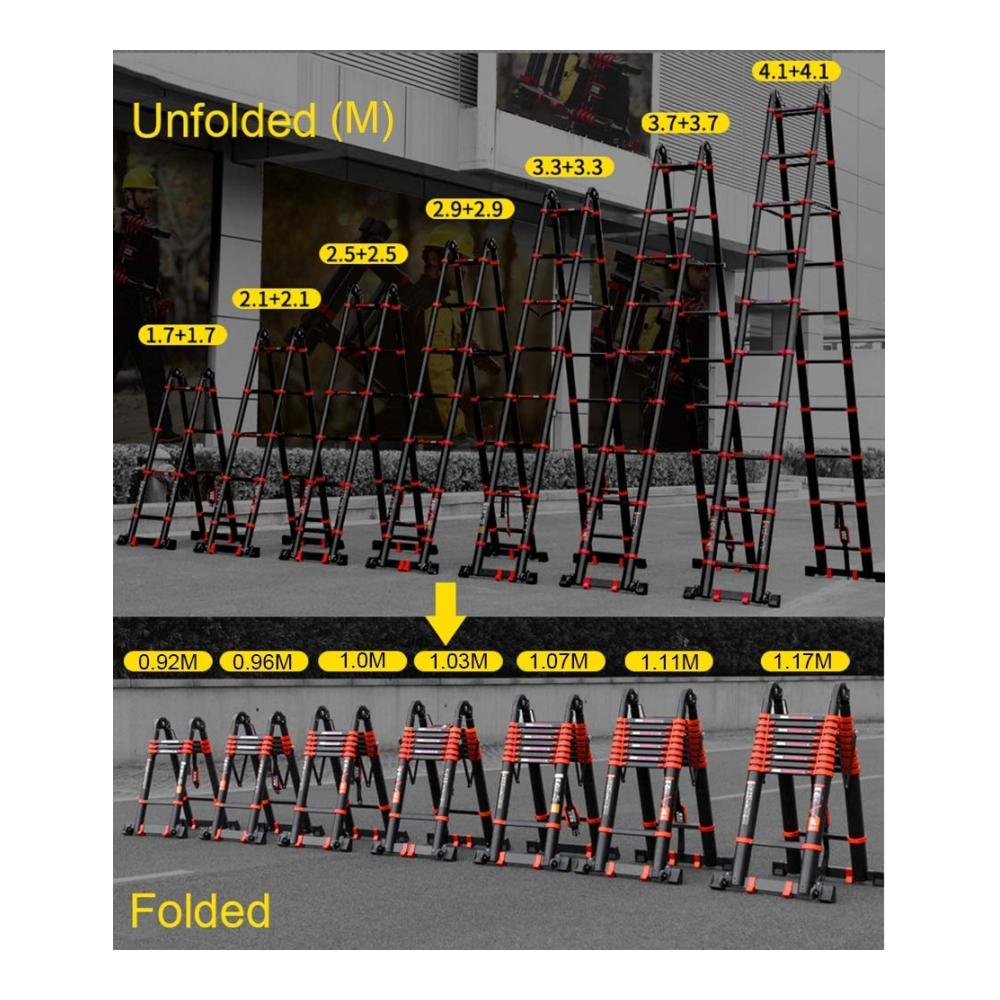 Teleskopleitern: Tragbare Leiter Falten Multi Zweck Für Bauzubehör – Tragbarer Profi Mit Hochleistungsrad – 330 £ Ladung – 1M / 82 7Ft.