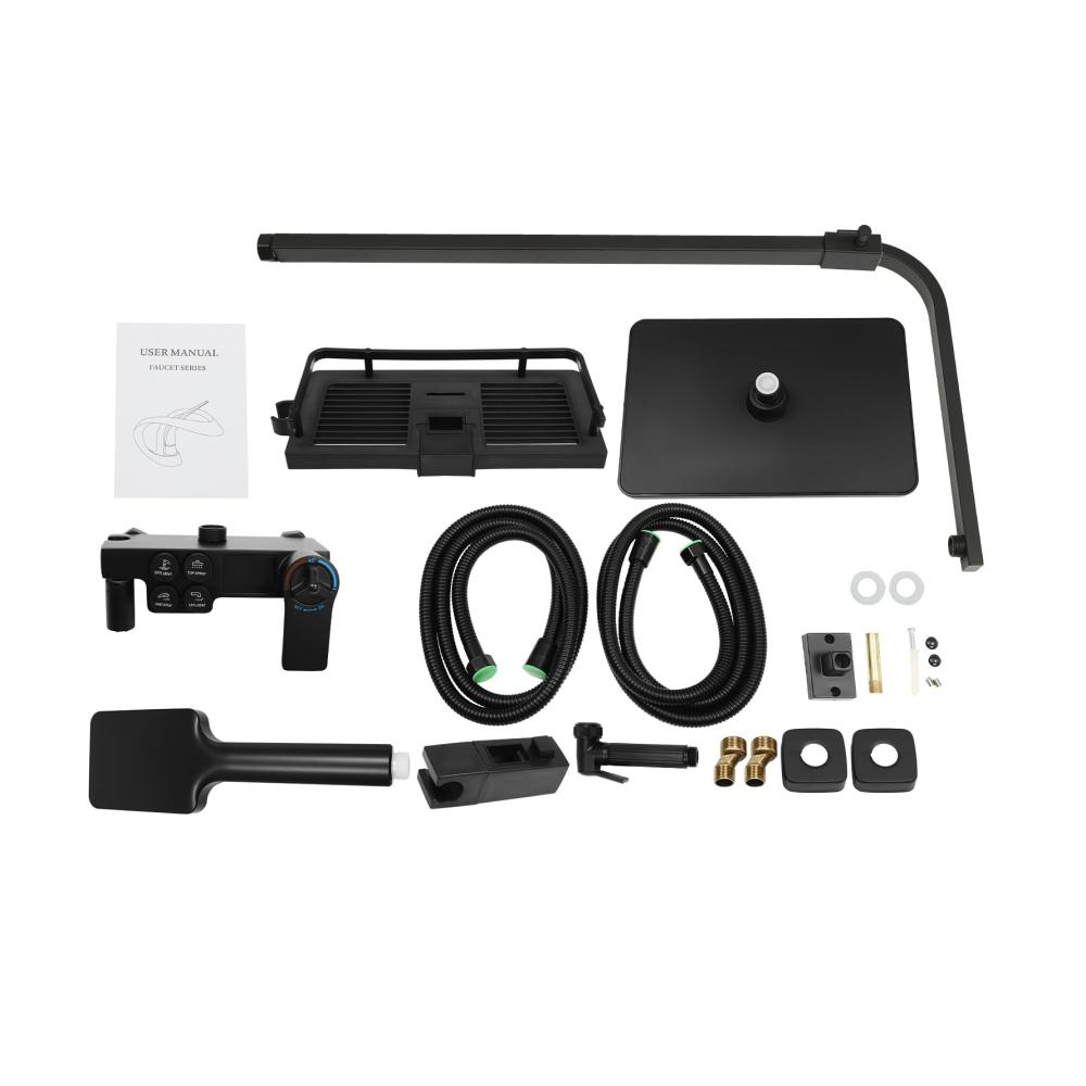Unsere Duscharmaturen Sets vereinen modernes Design, fortschrittliche Technologie und erstklassige Qualität. Das thermostatische Duschsystem sorgt nicht nur für eine angenehme Temperatur, sondern bietet auch eine stilvolle Ergänzung für Ihr Badezimmer.