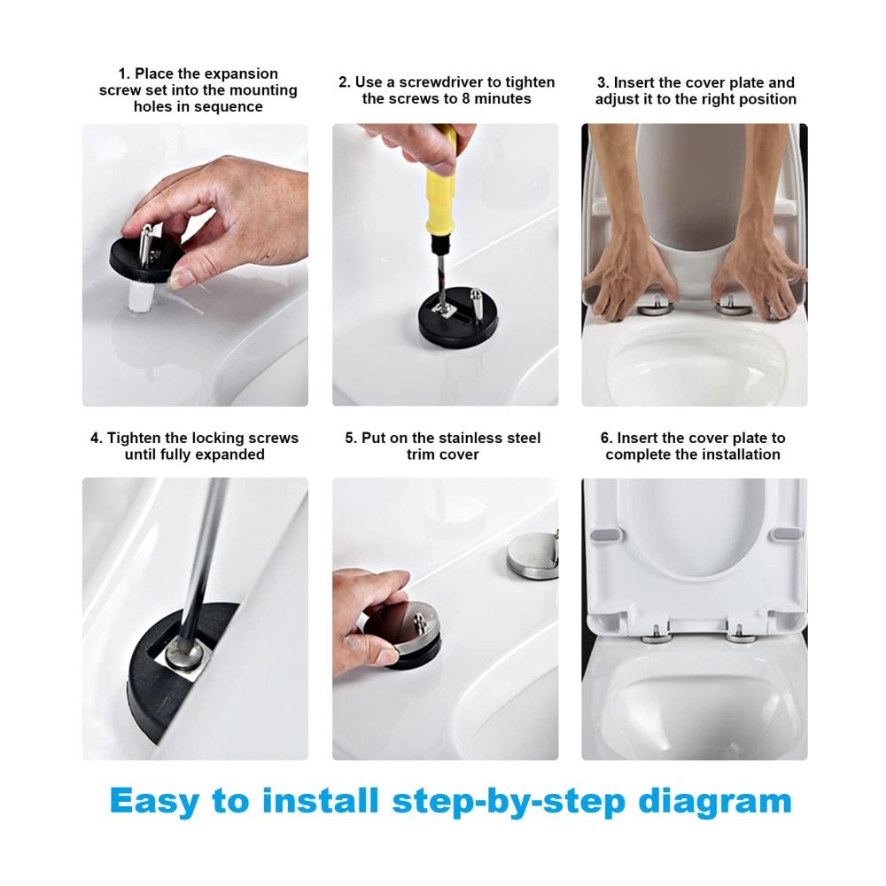 [ Einfach zu installieren, oben montierte Installation, verstellbare Edelstahlscharniere, die perfekt auf Ihre Toilette passen. Enthält alle für die Installation notwendigen Teile.