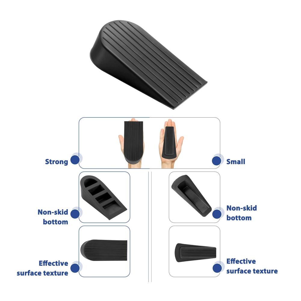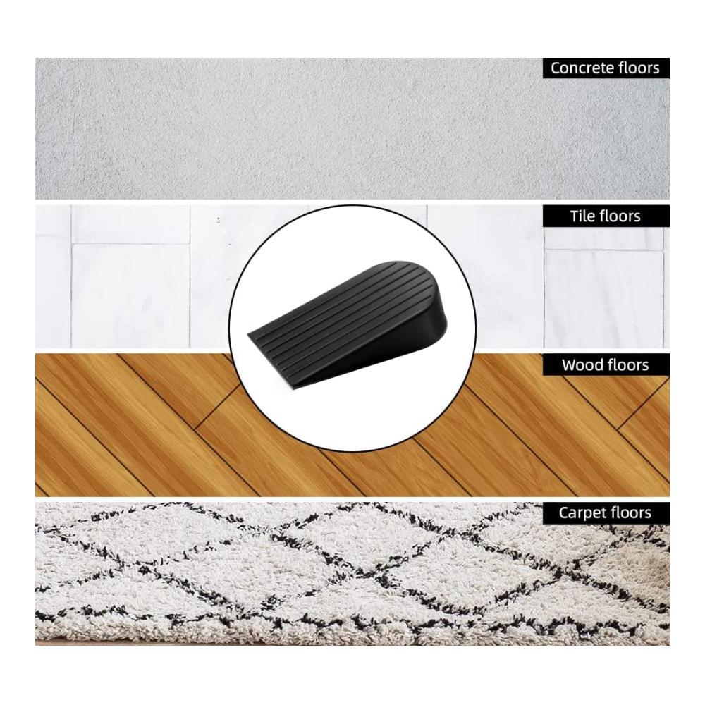 Breite Anwendungen: Der robuste rutschfeste Gummi-Türstopperkeil eignet sich für Holztüren, Schwerlasttüren, Glastüren und Metalltüren. Es kann auch das automatische Schließen aller Arten von hydraulischen Türen blockieren. Sie funktionieren gut auf Holzböden, Teppichen, Beton, Keramikfliesen und anderen Böden und bieten hervorragenden Halt.