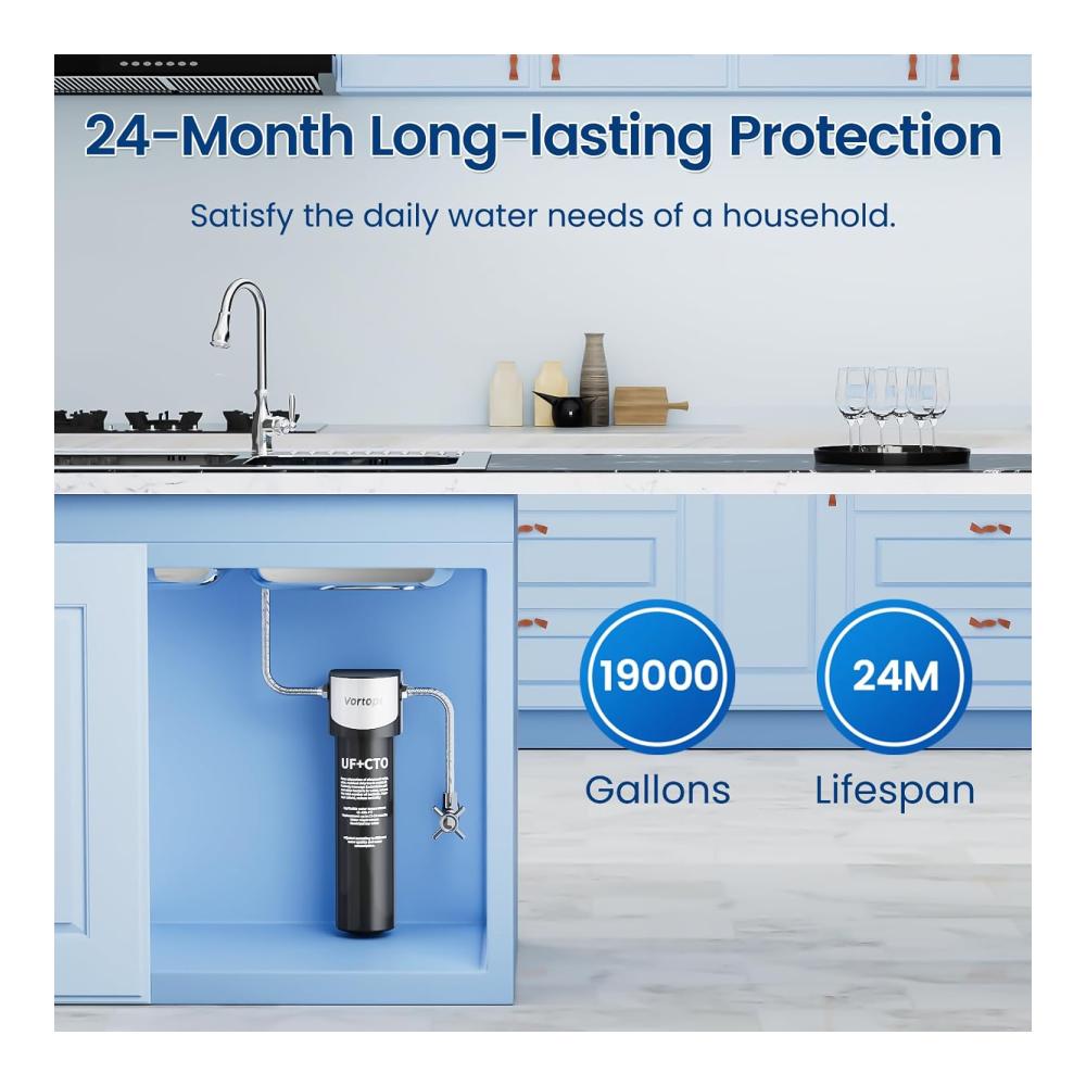 𝟐 𝐉𝐚𝐡𝐫𝐞 𝐥𝐚𝐧𝐠𝐞 𝐋𝐞𝐛𝐞𝐧𝐬𝐝𝐚𝐮𝐞𝐫: Mit einer super Filtrationskapazität von 70.000 liter sorgt das Wasserfiltersystem unter dem Waschbecken für eine stetige Versorgung mit sauberem und gesundem Wasser für Ihre täglichen Bedürfnisse. Seine Lebensdauer beträgt bis zu 24 Monate, was Ihrer Familie langfristigen Schutz bieten kann.