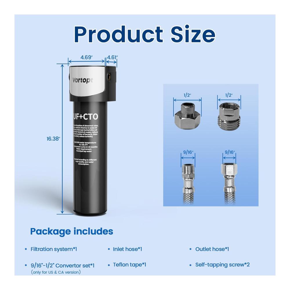 𝐄𝐢𝐧𝐟𝐚𝐜𝐡𝐞 𝐈𝐧𝐬𝐭𝐚𝐥𝐥𝐚𝐭𝐢𝐨𝐧: Der gesamte Installationsprozess dieses Unterbaufilters dauert weniger als 3 Minuten. Der Rohrdurchmesser dieses Filtersystems beträgt 9/16 Zoll. Sie können vor dem Kauf prüfen, ob es zu Ihrer Küchenrohrgröße passt.Wenn Sie Fragen zur Installation haben, können Sie sich gerne an uns wenden.